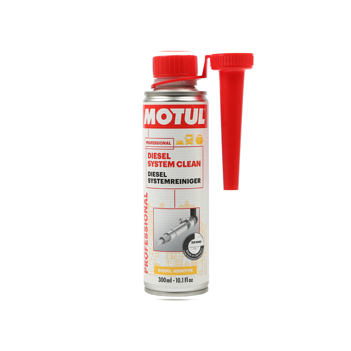 Prípravok pridajte do plnej nádrže paliva. Prípravok Motul Diesel System Clean čistí od usadenín vstrekovací aparát i vstrekovacie trysky. Obsahuje špeciálne mazacie látky, ktoré mažú vysokotlaký systém, čím zabraňuje tvorbe miniatúrnych kovových špôn, ktoré pridierajú vstrekovacie trysky. Odporúča sa prípravok používať každú druhú plnú nádrž. Prípravok odstraňuje nánosy z ventilov. Prípravok dokonale vyčistí celý spaľovací priestor diesel motora.